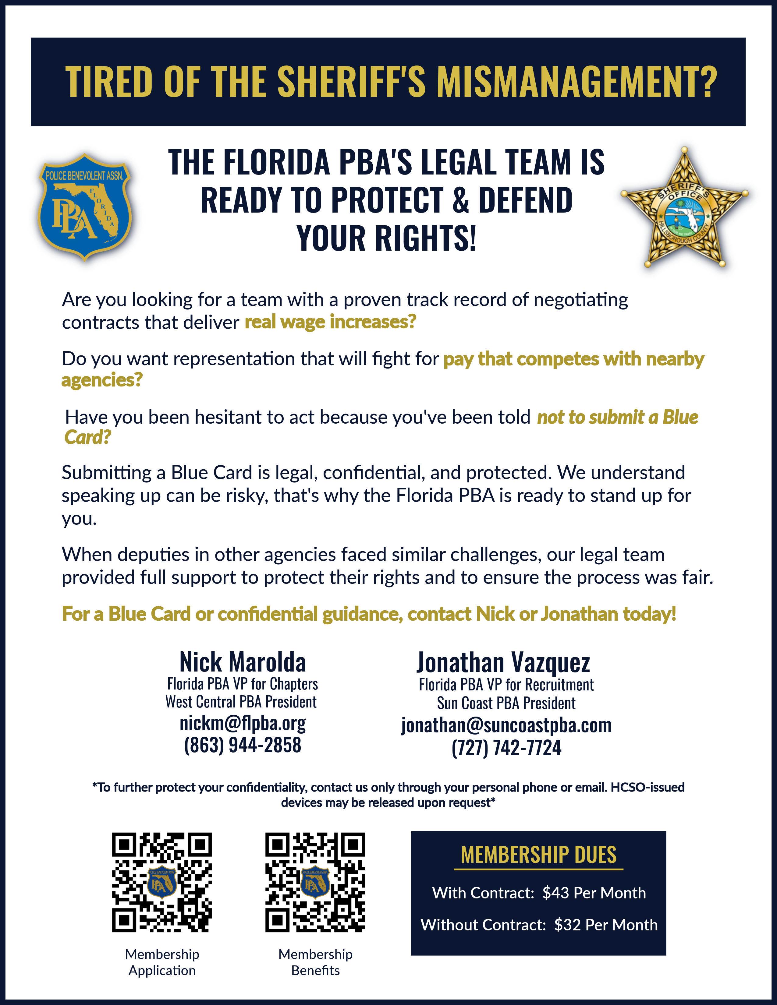 Florida Police Benevolent Association membership is open to all certified law enforcement and corrections officers regardless of race, creed, sex or national origin. The Association is made up of semi-autonomous charters formed on a county-wide or regional basis, and local or statewide chapters.